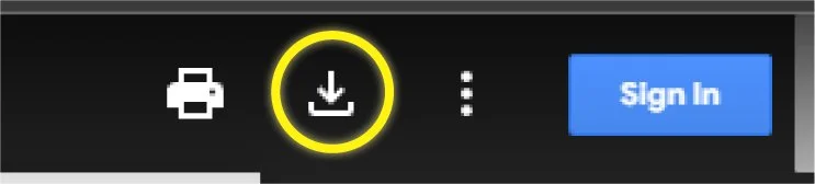 To save these files, you can either copy or paste the script to a text file and save it as a .gpx, or use the download link at the top right corner, which will look like the icon in the yellow circle below…